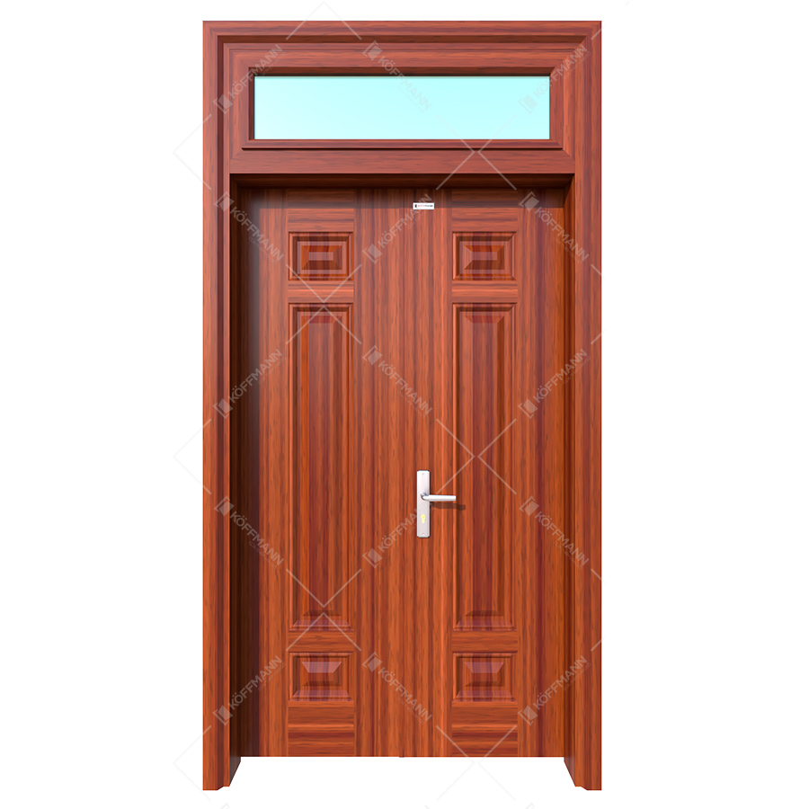 Cửa thép vân gỗ Koffmann 2 cánh đều, 1 ô thoáng kính tại Ninh Bình