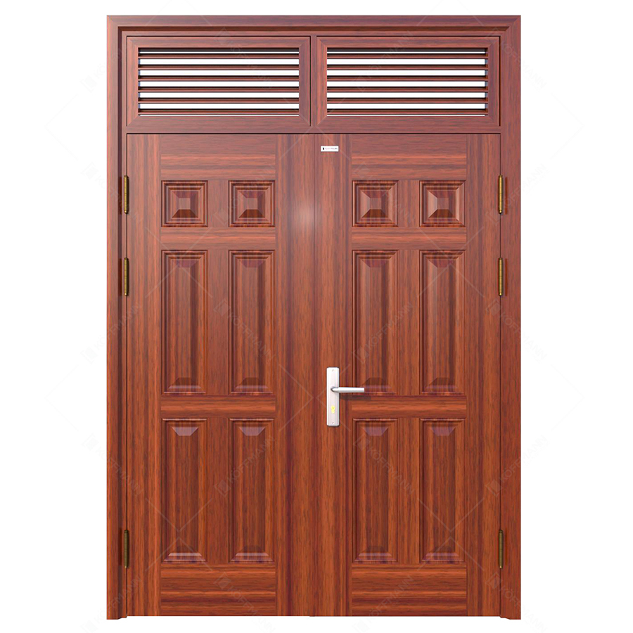 Cửa thép vân gỗ Koffman 2 cánh đều, 2 ô nan chớp tại Ninh Bình